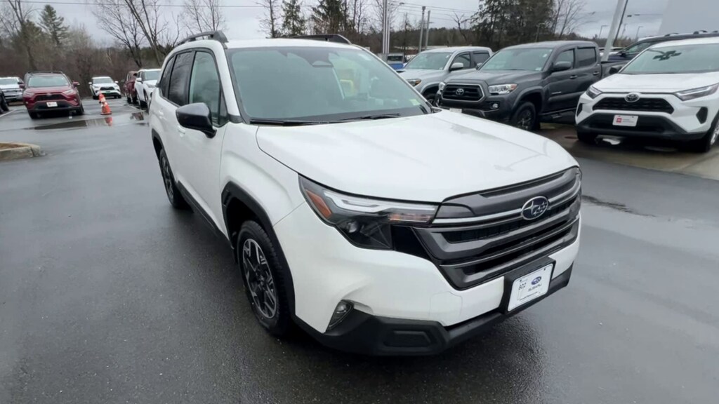802 Subaru is proud to present you with another True Market Priced Vehicle. This 2026 Subaru Forester Premium is loaded with the following Factory Options: Power Rear Gate and Blind Spot Detection with Rear Cross Traffic Alert (Automatic Emergency Steering, Blind-Spot Detection (BSD)/RCTA System, Emergency Lane Keep Assist, and Power Rear Gate), 4-Wheel Disc Brakes, 6 Speakers, ABS brakes, Air Conditioning, Alloy Wheels, AM/FM radio: SiriusXM with 360L, Anti-whiplash front head restraints, Auto High-beam Headlights, Automatic temperature control, Brake assist, Bumpers: body-color, Driver door bin, Driver vanity mirror, Dual front impact airbags, Dual front side impact airbags, Electronic Stability Control, Emergency communication system: MySubaru Companion (5-years free), Exterior Parking Camera Rear, Four wheel independent suspension, Front anti-roll bar, Front Bucket Seats, Front Center Armrest, Front dual zone A/C, Front Fog Lights, Front reading lights, Fully automatic headlights, Heated Door Mirrors, Heated Front Bucket Seats, Heated Front Seats, Illuminated entry, Knee airbag, Leather steering wheel, Low tire pressure warning, Occupant sensing airbag, Outside temperature display, Overhead airbag, Overhead console, Panic alarm, Passenger door bin, Passenger vanity mirror, Power door mirrors, Power Drivers Seat, Power moonroof: Panoramic, Power steering, Power windows, Premium Textured Cloth Upholstery, Radio data system, Radio: Subaru 11.6" Multimedia Plus System, Rear anti-roll bar, Rear seat center armrest, Rear window defroster, Rear window wiper, Remote keyless entry, Security system, Speed control, Speed-sensing steering, Split folding rear seat, Spoiler, Steering wheel mounted audio controls, Tachometer, Telescoping steering wheel, Tilt steering wheel, Traction control, Trip computer, Variably intermittent wipers, and Wheels: 17" x 7.0 J Dark Metallic Aluminum-Alloy!!